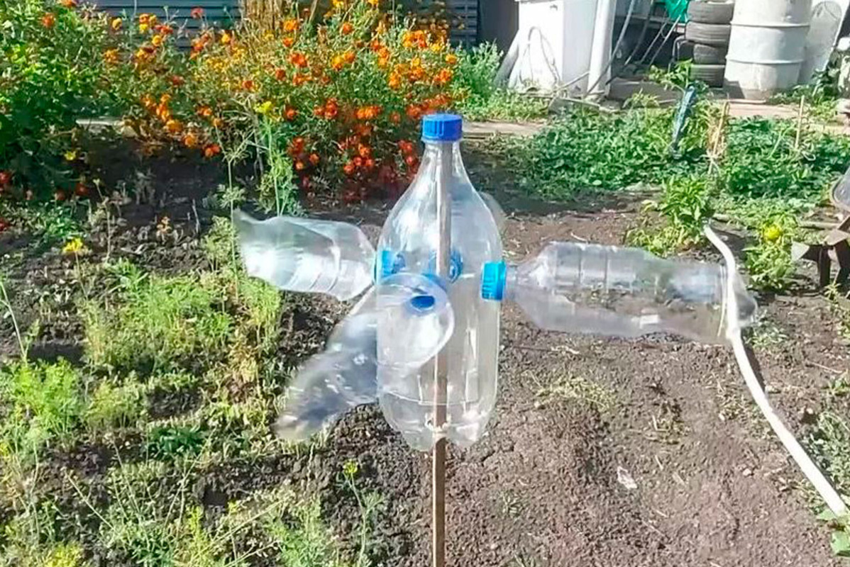 Так, многие дачники советуют изготовить простой ветряк из пластиковых бутылок, который эффективно отпугивает птиц.