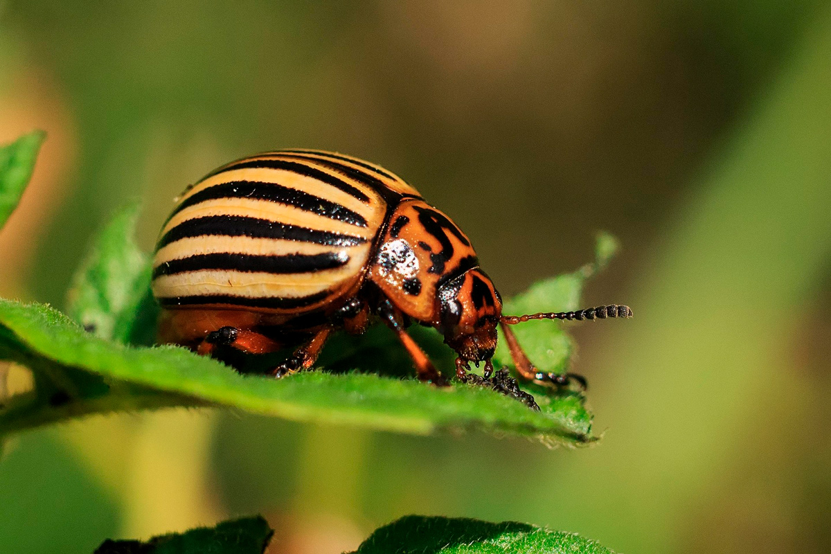 Колорадский жук представляет серьезную угрозу для картофеля, поскольку уничтожает листья и молодые побеги.