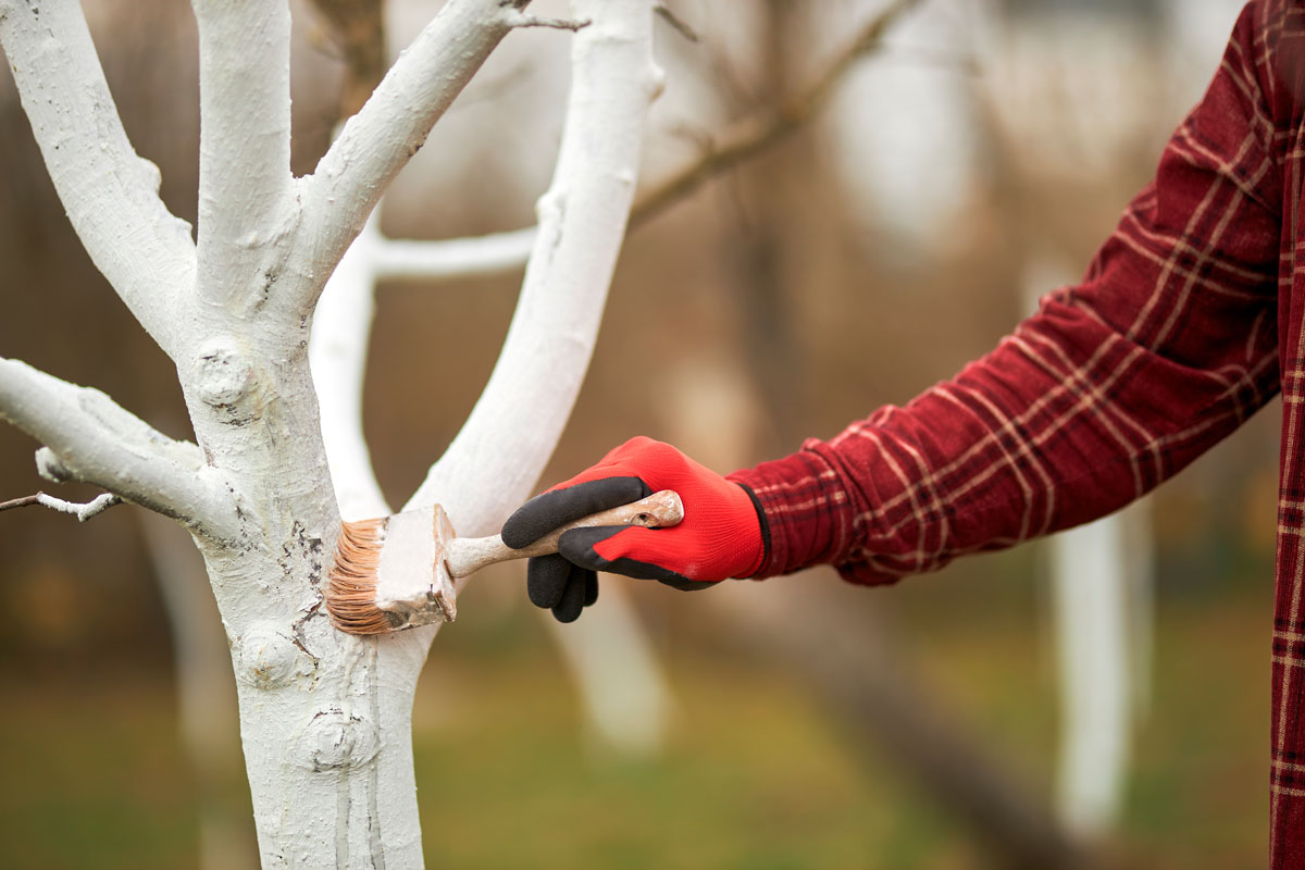 Весной садоводы наносят побелку на деревья для защиты от вредителей, грибковых заболеваний и солнечных ожогов.