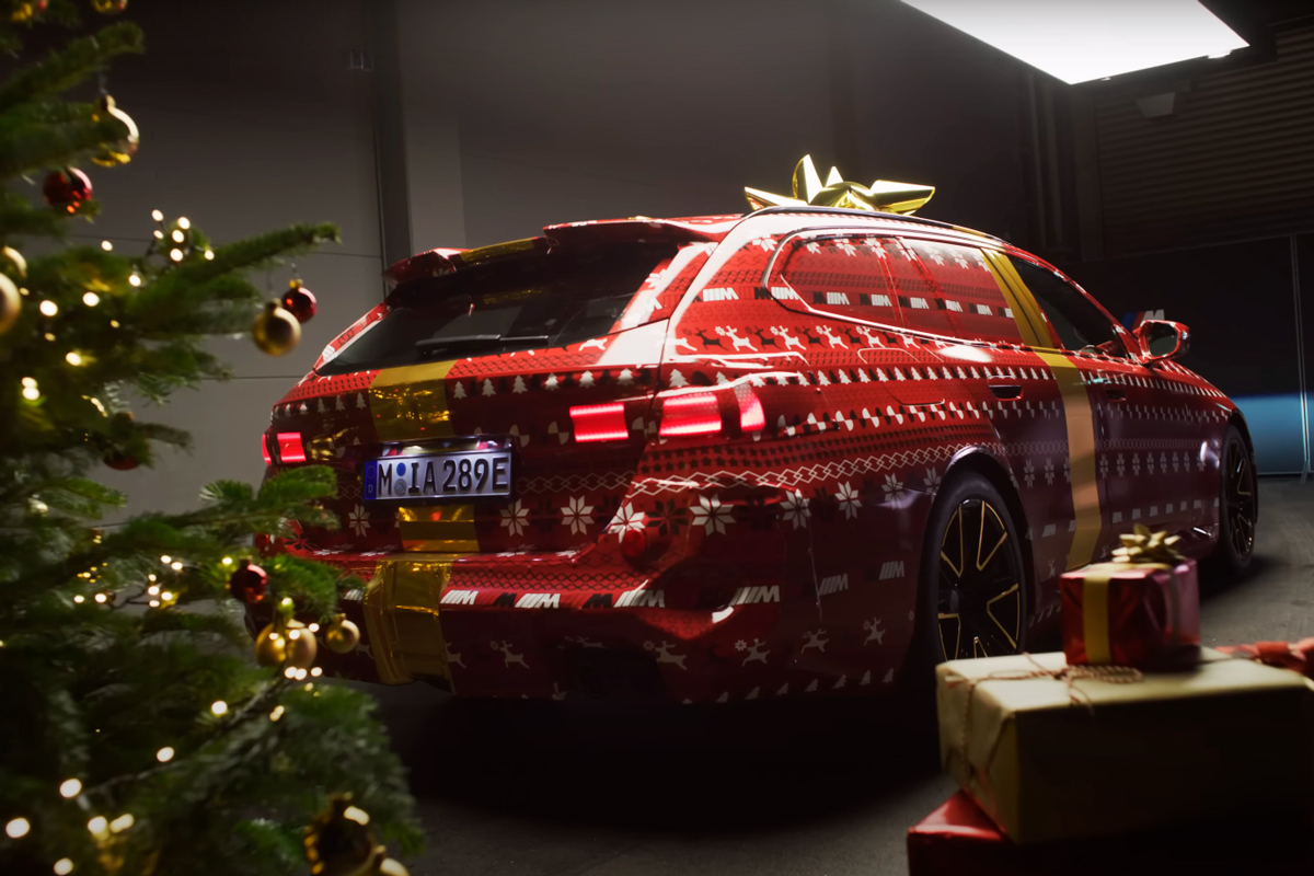 Компания BMW в новогодней рекламе показала новейший суперуниверсал BMW M5 в подарочной упаковке.