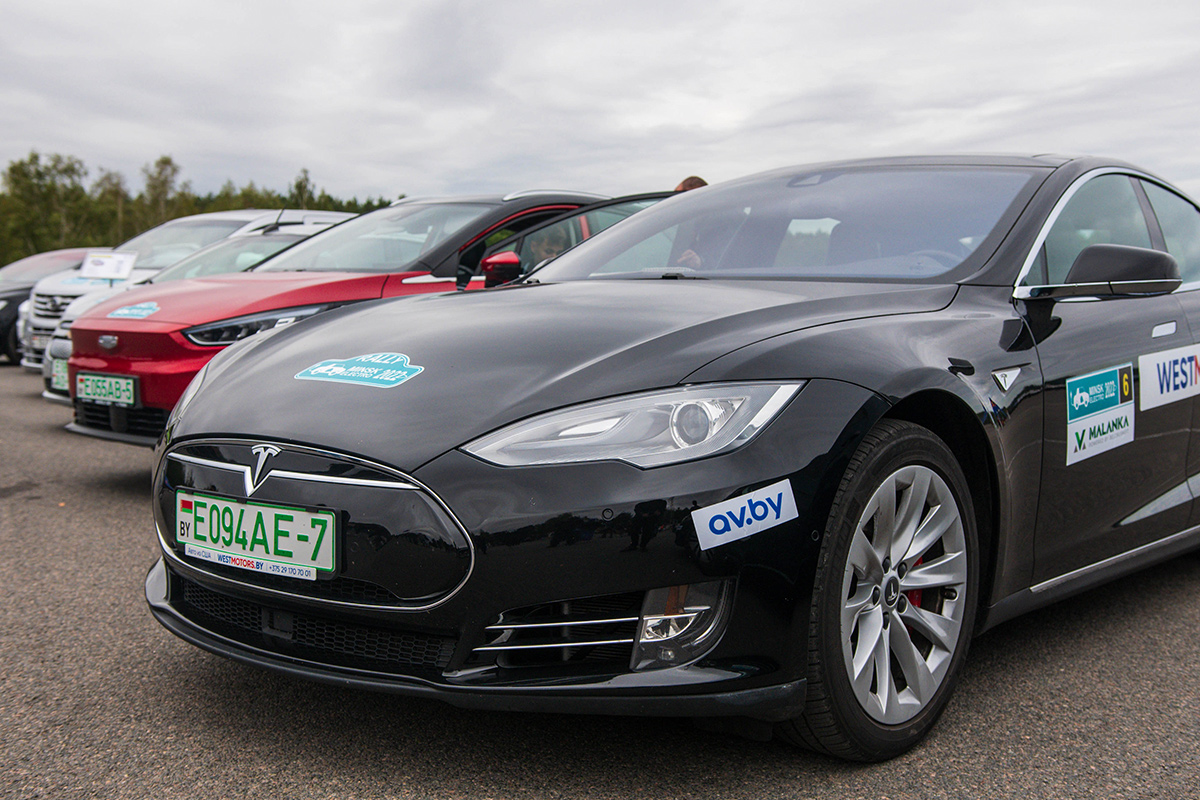 На трассе полигона Объединенного института машиностроения НАН Беларуси соревнуются владельцы электрокаров. Стартовали всего восемь экипажей на Geely Geometry C, BMW i3 и i4, Сhevrolet Spark, Volkswagen Golf, "китайцах" и конечно же Tesla.