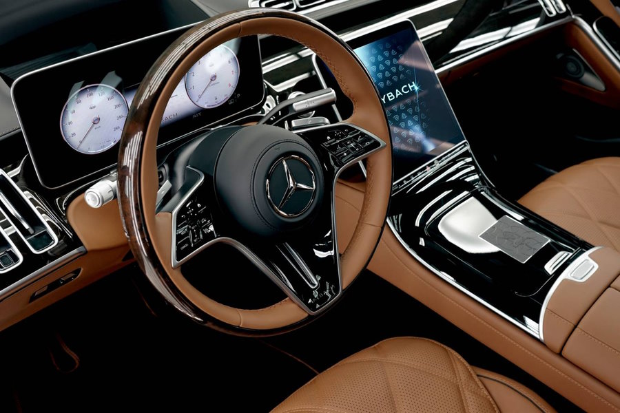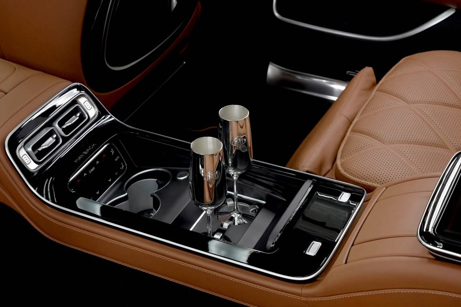 Золотые вставки, именуемые компанией "медалями", можно увидеть как снаружи, так и внутри автомобиля. Их дизайн отсылает к историческим моделям Maybach и символизирует сердце автомобиля – двенадцатицилиндровый двигатель, который собирается вручную.