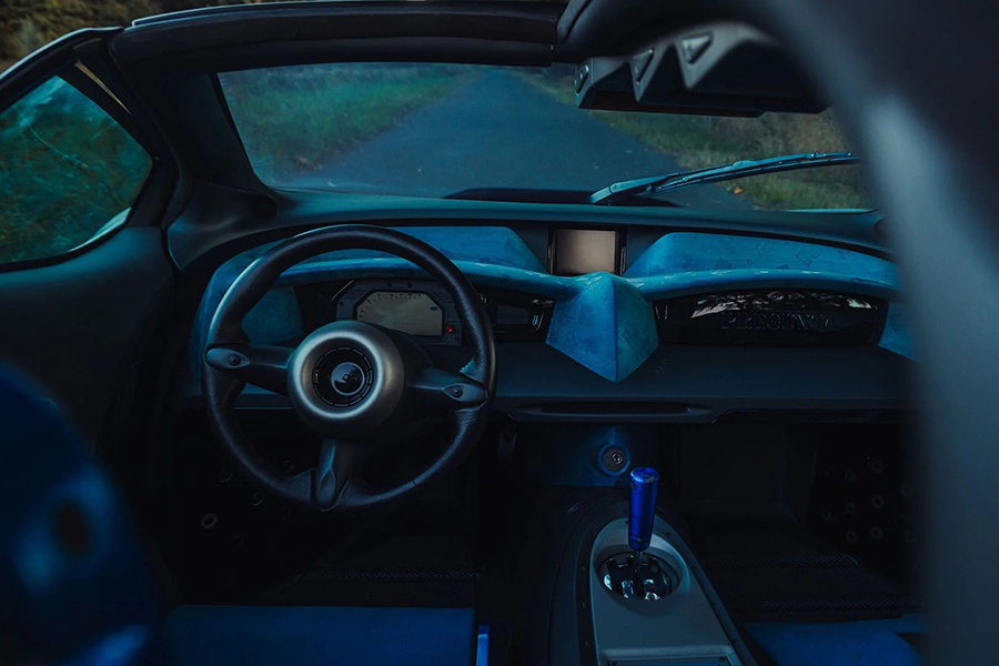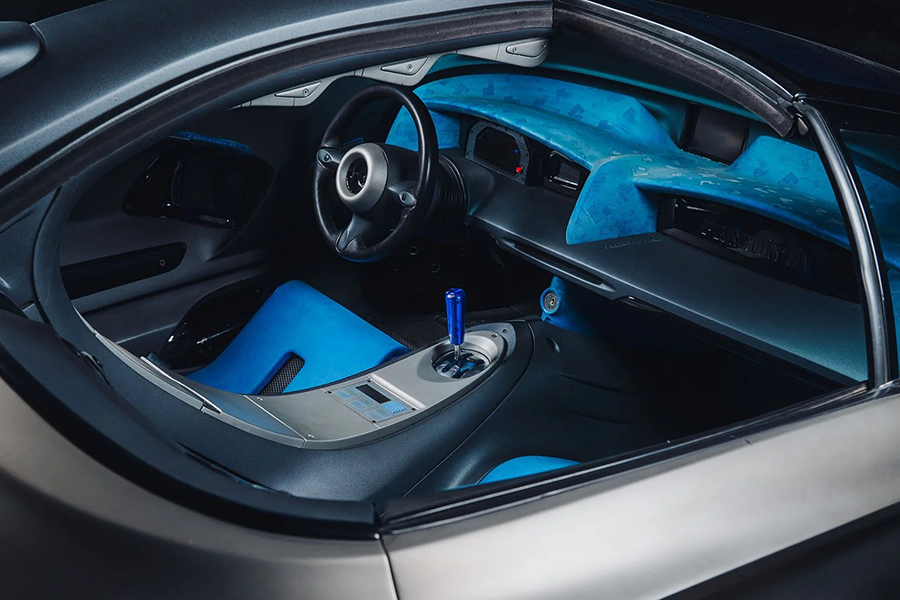Авиационная тематика прослеживается во всем облике автомобиля: от кузовных панелей из углеродного волокна, окрашенных в матово-серый цвет, до фонаря-кабины с гильотинными дверями и двумя съемными панелями крыши из поликарбоната. Также автомобиль был оснащен передовыми для своего времени цифровыми боковыми зеркалами.