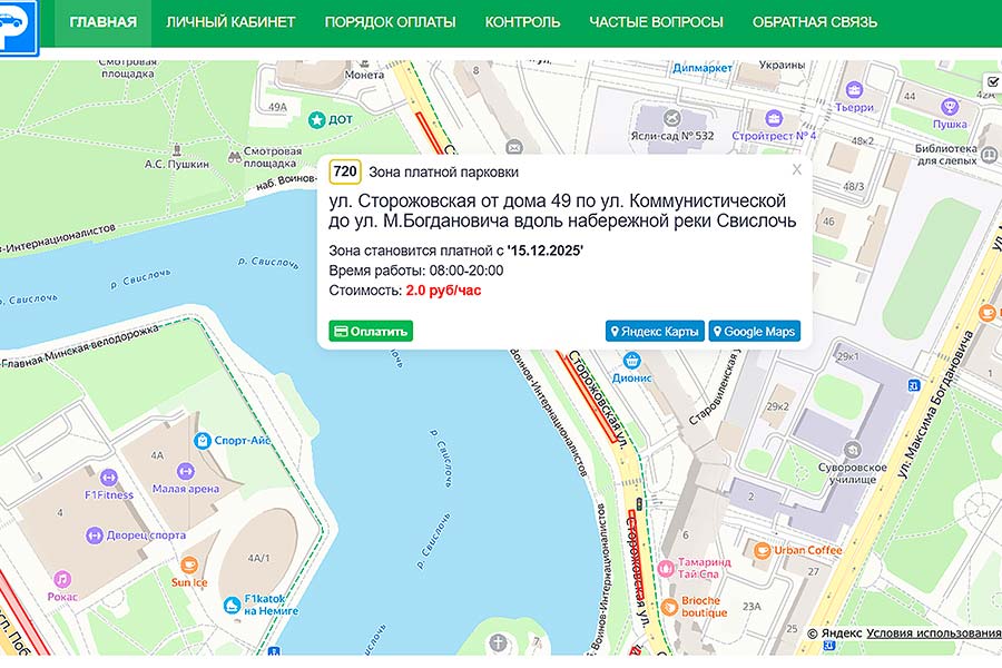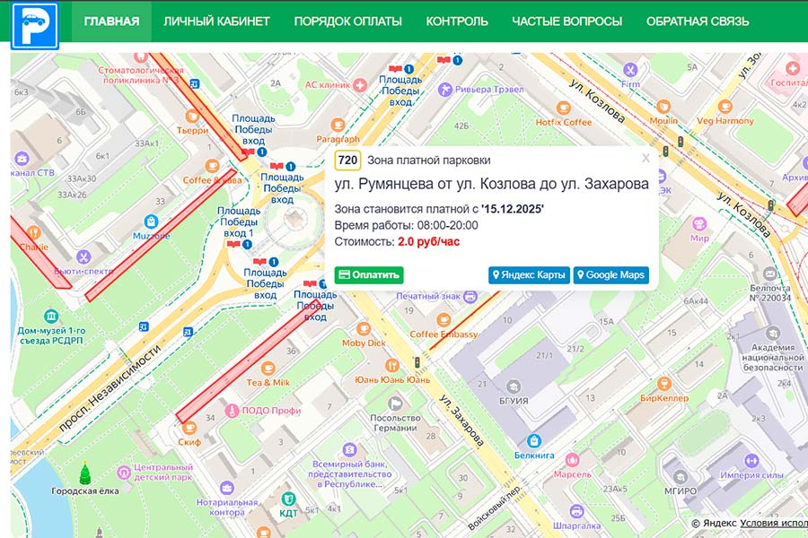 В государственном учреждении сообщили, что с 10 декабря доступна оплата банковской картой при выборе парковки на карте.