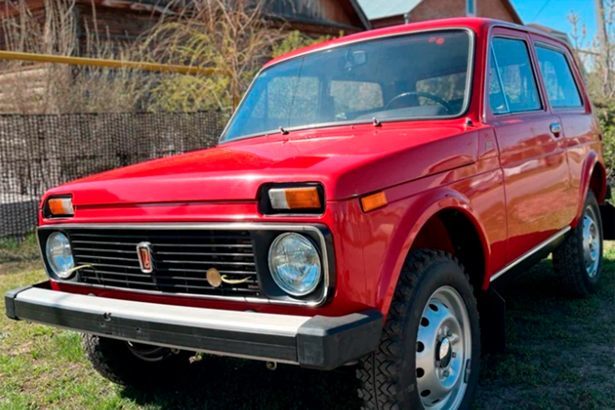 "Нива" продается в своей топовой на тот момент версии. Ярко-красный цвет кузова, а дерматиновый салон – на контрасте черный.