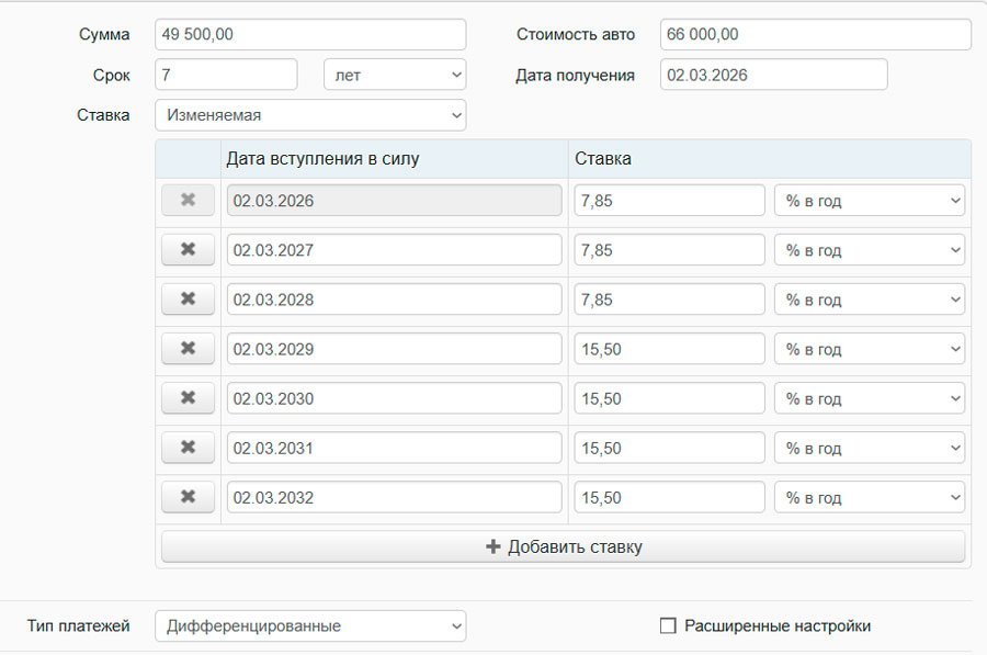 Грейс-период в первые 3 года – это фиксированные 7,85%, в оставшиеся 4 года ставка составит переменные 15,5% (СР+5,75 п.п.).