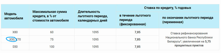 Самый привлекательный процент в грейс-период на Belgee X50 дает уже упомянутый Белагропромбанк – 3,5% годовых. Но на такие условия по займу могут рассчитывать только семьи с детьми-инвалидами.