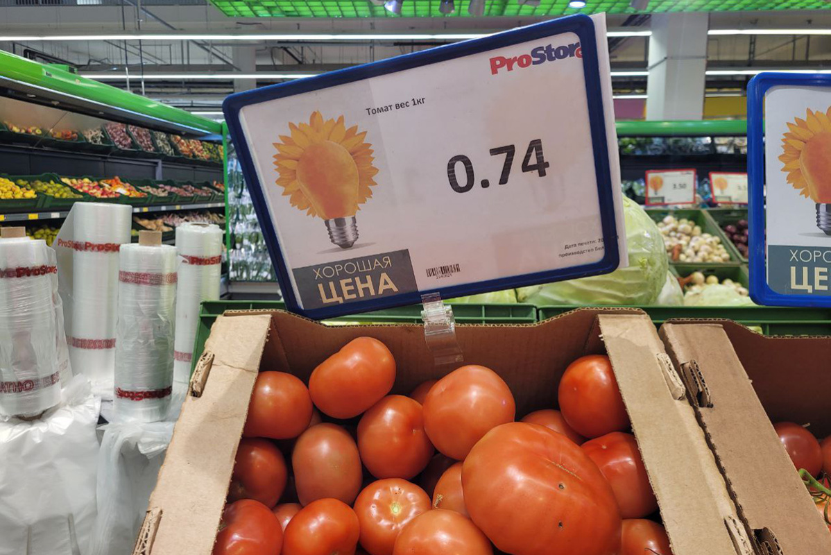 В минских гипермаркетах Prostore обнаружились помидоры по 74 копейки. Причем не мятые – зрелые, крупные. Видно, что только с ветки сорваны. Даже немного пахнут помидором.