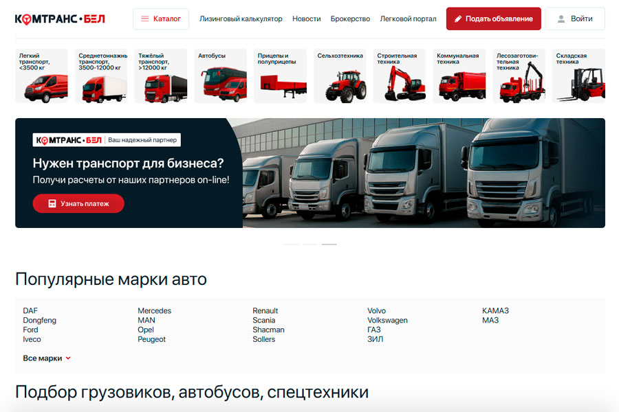 Что за достойные площадки? Например, новая специализированная интернет-площадка комтранс.бел, на которой публикуют свои объявления о продаже коммерческого транспорта и спецтехники дилеры, просто юридические лица и частники.