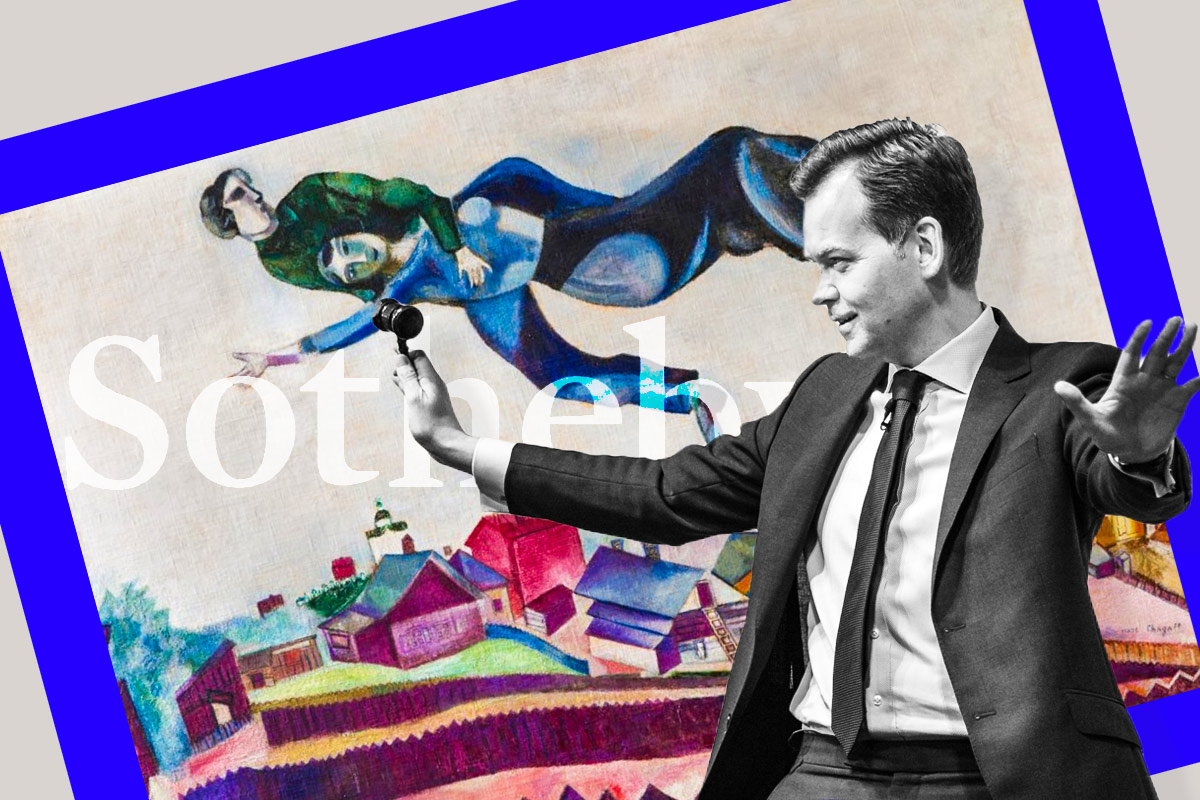 На вечернем аукционе современного искусства Sotheby's в Нью-Йорке картина Марка Шагала "Над городом" была продана за $15 616 200.