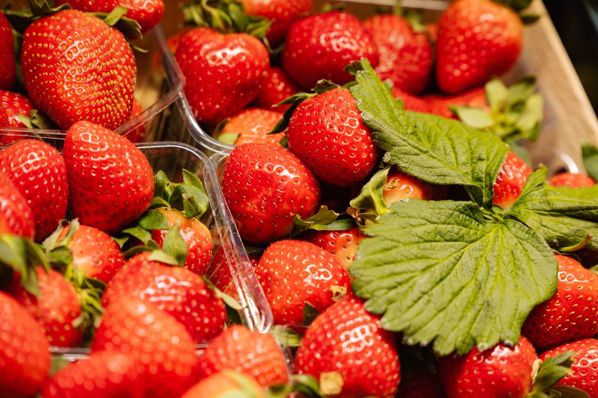 На Западном рынке в районе метро Кунцевщина с утра открыты десятки точек со свежей клубникой. Ароматы этой спелой ягоды разлетаются по торговым площадям, притягивая покупателей.