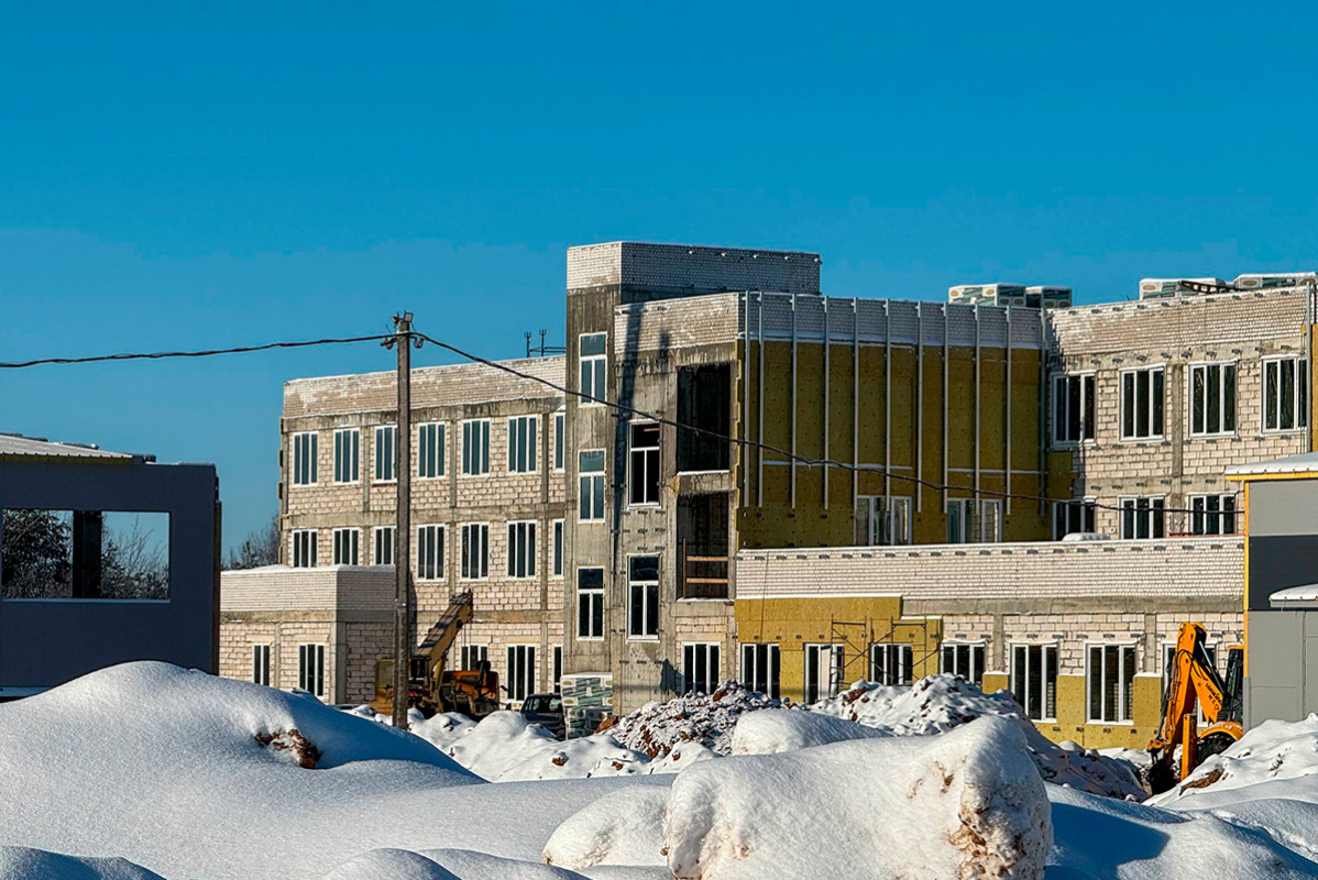 Сейчас специалисты работают над возведением административно-бытового корпуса, производственного участка, вспомогательных помещений и инженерных сетей.