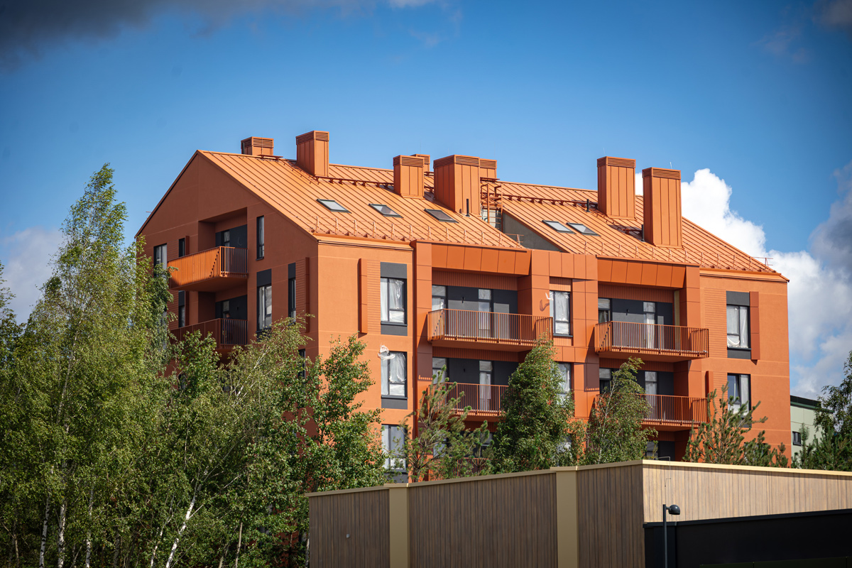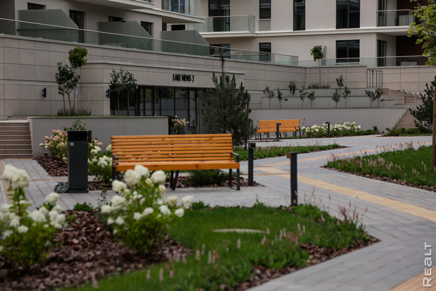 Внешний облик и планировочные решения дома напоминают современные резиденции в курортных странах Европы. Фасад с открытыми, частично застекленными лоджиями выглядит легко и стильно, что контрастирует со многими типовыми минскими новостройками.