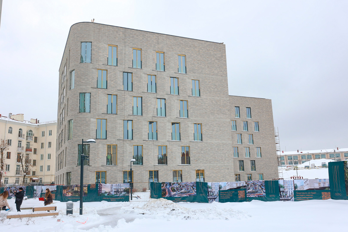 Фасад здания кирпичный. Так застройщик планировал "вписаться" во внешний облик столицы в теперь уже центральной ее части.