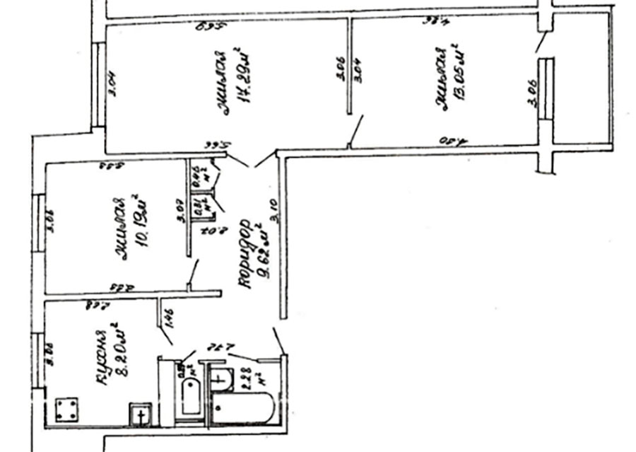 Последняя квартира в подборке находится в пятиэтажке 1968 года постройки. В 2019 году тут провели капремонт. Жилье, что выставлено на продажу, находится на втором этаже и занимает 51,6 м². Площадь кухни – 6,3 метра квадратного. Трешка выглядит аккуратно, но местами требует ремонта.