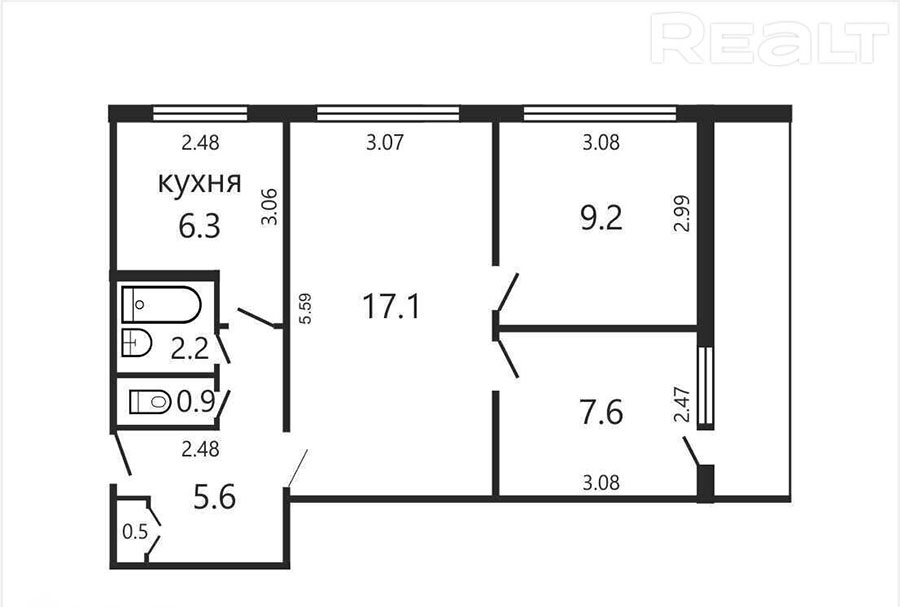 Жилье с довольно просторным коридором, где также продуманы две небольшие ниши. Санузел раздельный.