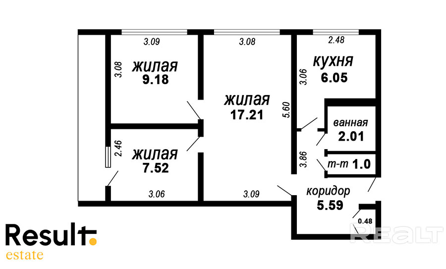 Цена трешки – $78 тыс. Квадратный метр стоит $1,18 тыс.