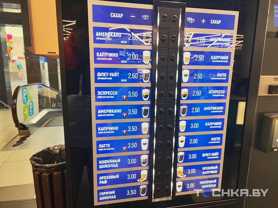 Автомат заметили и в соседнем магазине. Там эспрессо и американо – по Br3, капучино и латте – на 50 копеек дороже.