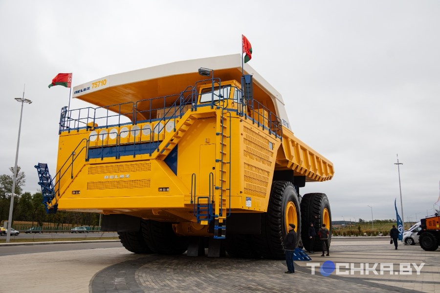 У входа в Международный выставочный центр BELEXPO гостей форума встречает гигантский 450-тонный БелАЗ.