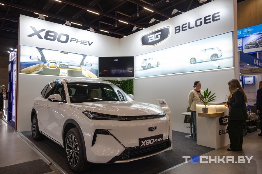 На стенде BELGEE блестит под светом прожекторов элегантный кроссовер X80 PHEV. В нем – первый гибридный двигатель, который объединяет преимущества бензина и электричества.