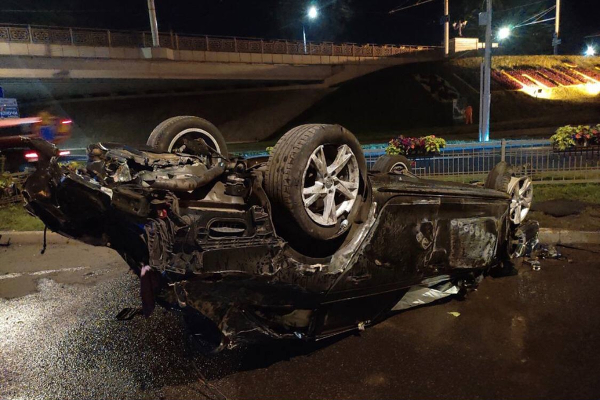 "По предварительной информации, вчера около 23:40 27-летний водитель автомобиля Audi двигался по проспекту Победителей со стороны ул. Саперов в направлении ул. Радужной. Вблизи пересечения ул. Орловской и проспекта Победителей автолюбитель не справился с управлением, наехал на бордюрный камень, металлическое ограждение и совершил неоднократное опрокидывание", – говорится в сообщении.