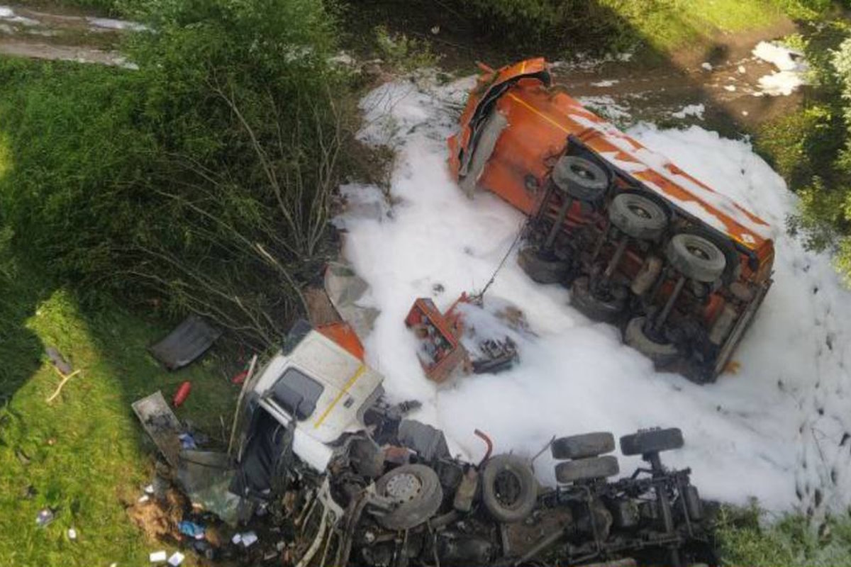 Там бензовоз столкнулся с грузовыми автомобилями Fiat Ducato и Iveco Daily, а после съехал в кювет.