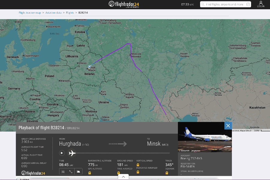 Пассажирке рейса Хургада – Минск стало плохо во время полета 9 декабря, заметил канал "ОтВинта | Авиация Беларуси".