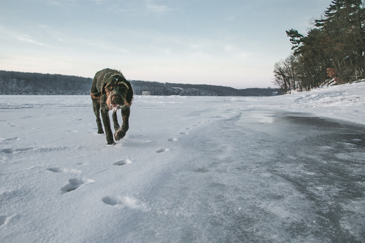 Местный житель заметил животное около 11 часов дня 11 марта. Пес провалился под лед и не мог самостоятельно выбраться.