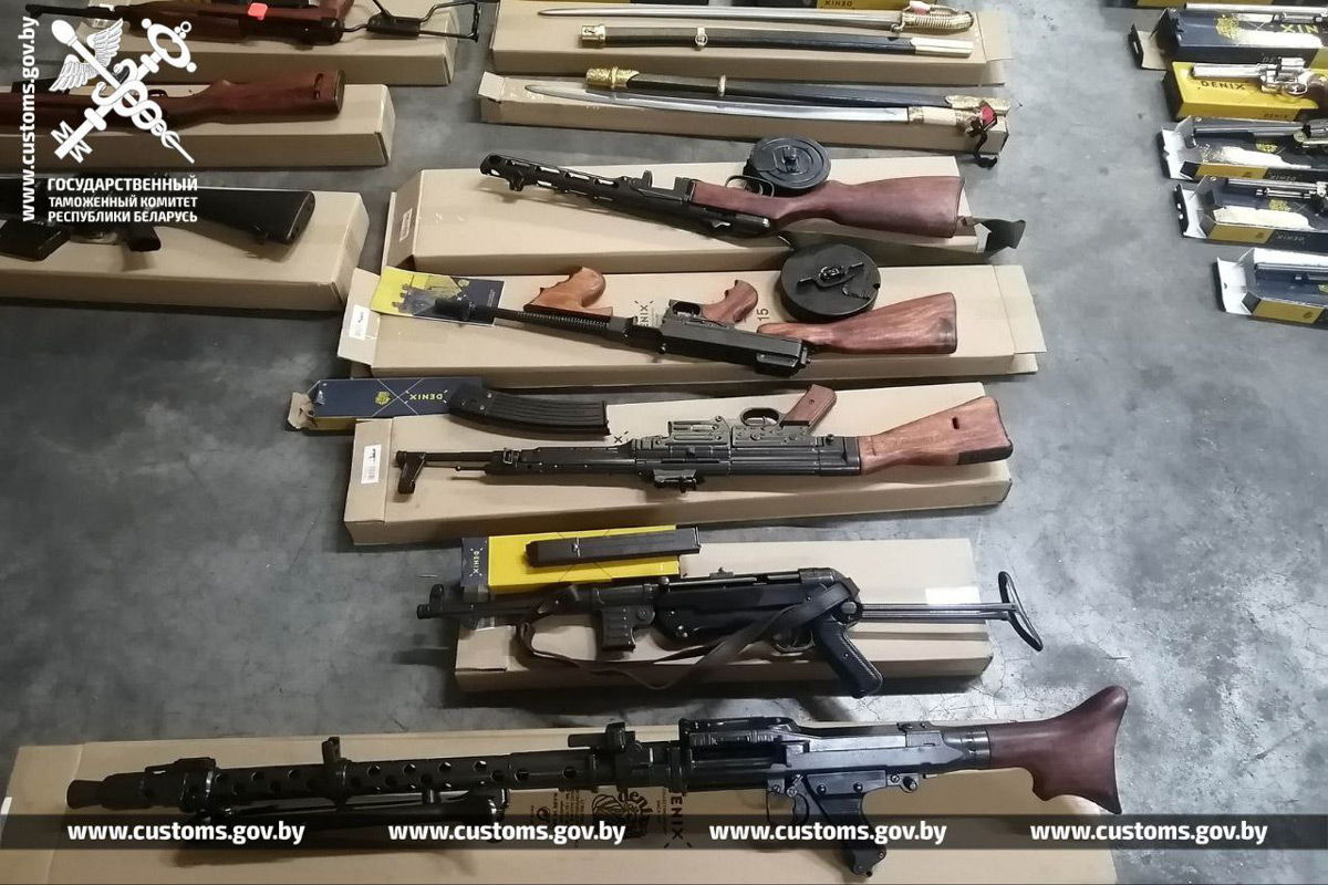 Белорусские таможенники в пункте пропуска "Козловичи" обнаружили крупную партию предметов, напоминающих огнестрельное и холодное оружие, об этом сообщают Таможенные органы Беларуси в своем Telegram.