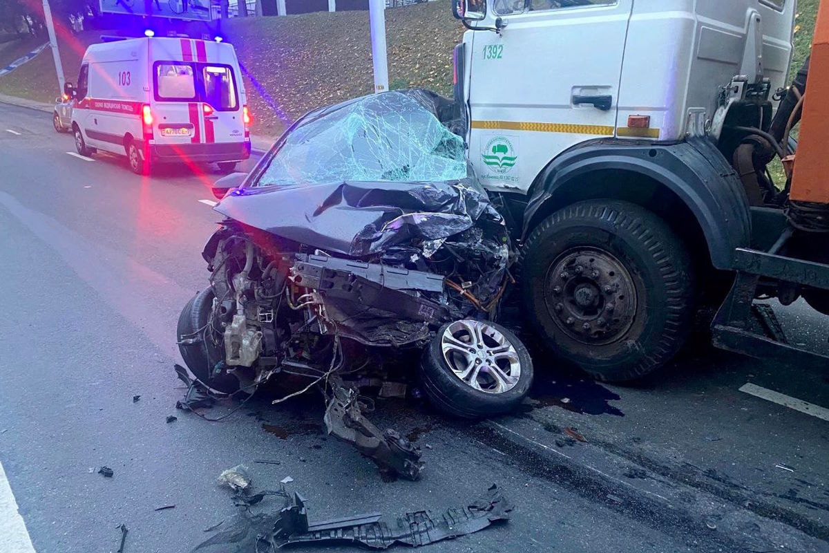 "Сегодня около 06:40 23-летний водитель электромобиля Chevrolet сервиса "Яндекс.Такси", двигаясь по ул. Маяковского, не справился с управлением и выехал на разделительную полосу. Затем машина повредила стойку дорожного знака и протаранила бетонную опору железнодорожного моста (путепровода)", – говорится в сообщении.