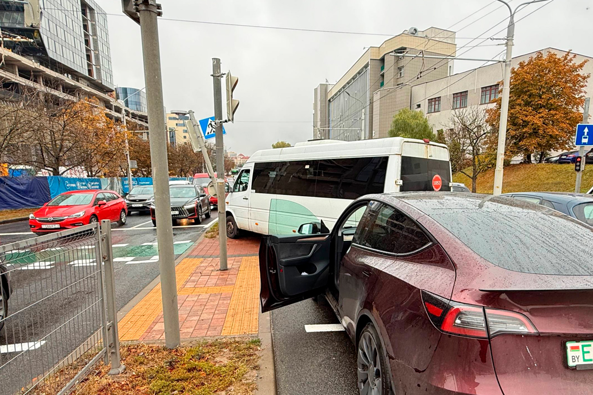В итоге мужчина не справился с управлением, выехал с проезжей части и врезался в светофор. Следом с маршруткой столкнулся ехавший позади автомобиль Tesla.