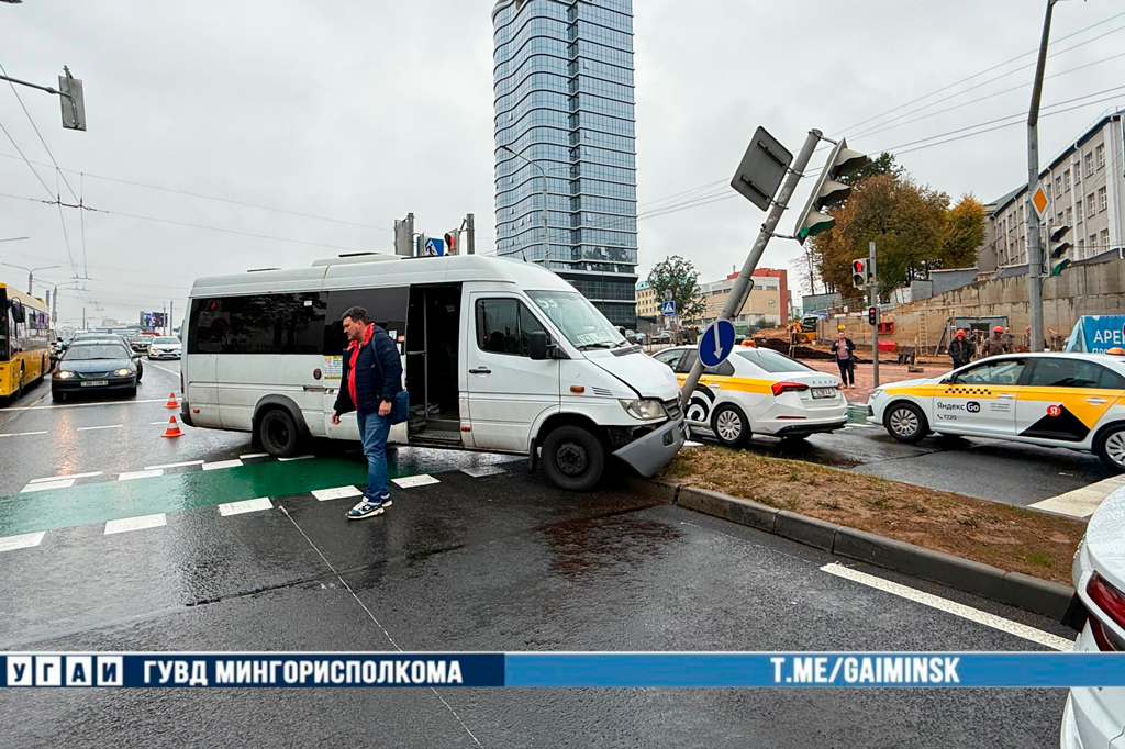 Серьезное ДТП произошло в Минске с участием маршрутного такси Mercedes. Двое человек получили травмы, пишет Telegram-канал "УГАИ ГУВД Мингорисполкома".