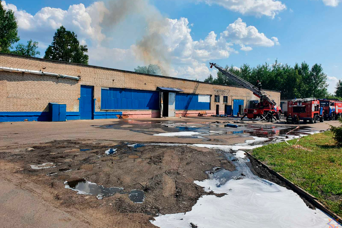 В результате пожара сильно повреждено оборудование внутри цеха, частично обвалилась крыша. Причина пожара выясняется.