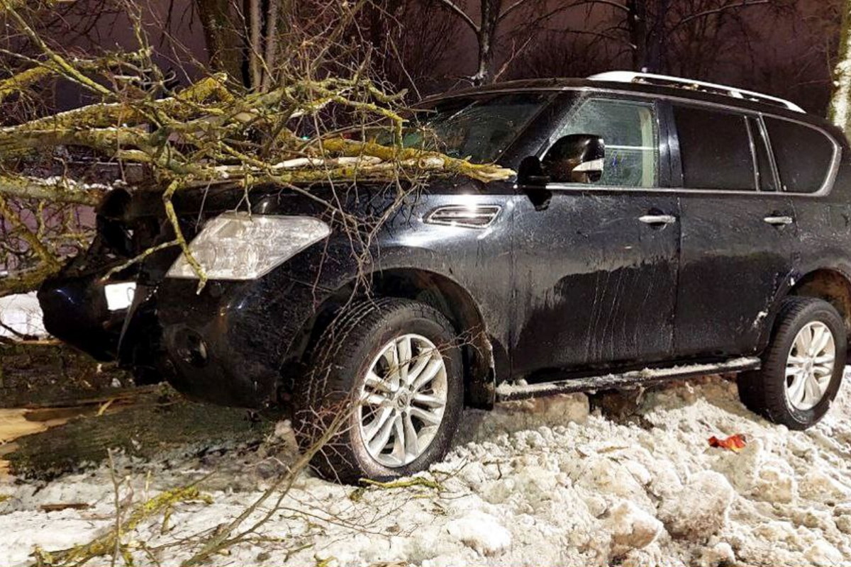 На столичной улице Железнодорожной водитель на Nissan Patrol снес дерево, сообщает ГАИ Минска.
