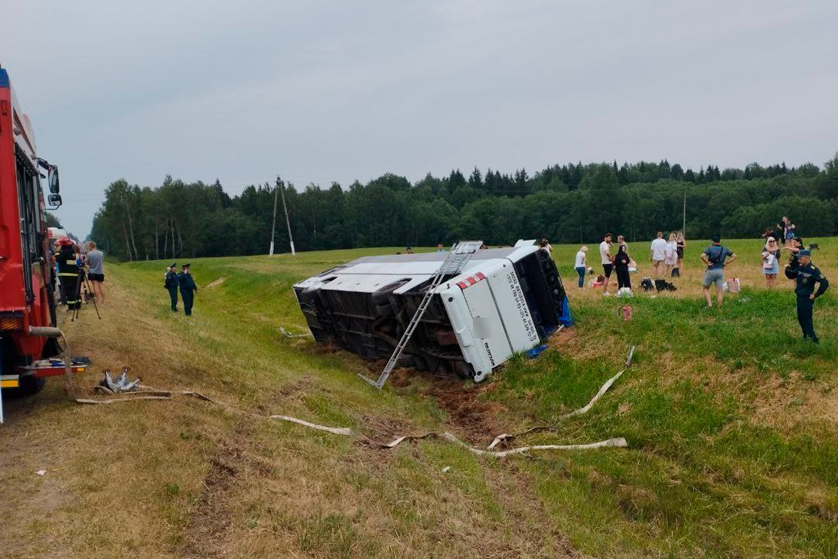 UPD Как рассказала пресс-секретарь МВД Наталья Сахарчук: "Автобус вез туристов, среди которых в основном были жители Могилева и области, в Санкт-Петербург на экскурсию. Всего в салоне, помимо водителя, находились 49 человек - семьи, в том числе с детьми".