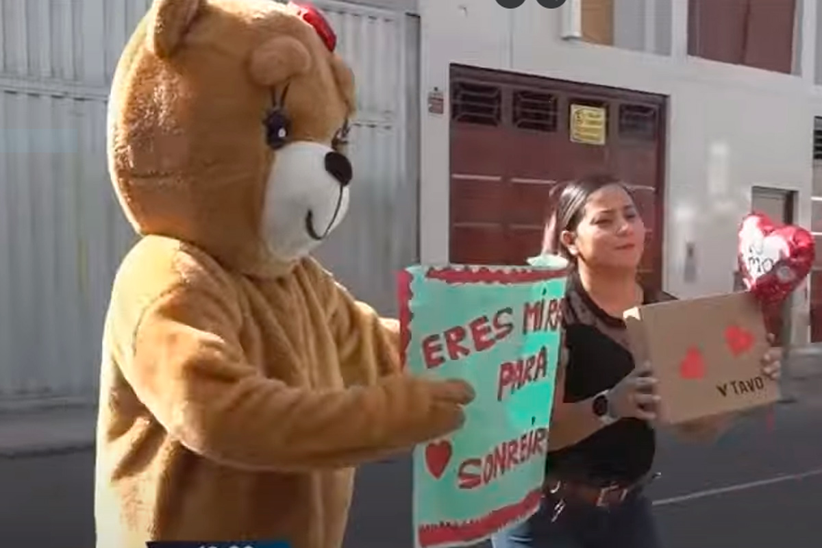 В лапах у "хищника" были шарики вместо оружия, а еще надпись с любовным признанием.