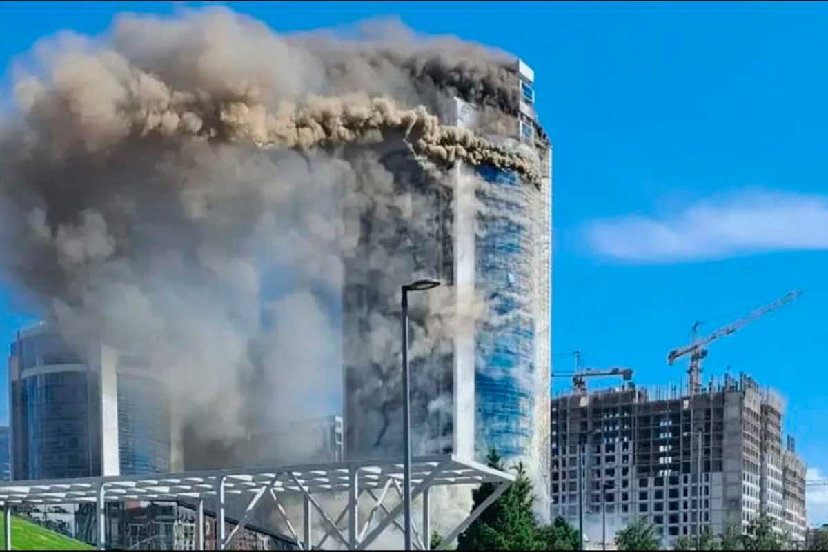 Огонь вспыхнул на 26-м этаже здания и вмиг охватил весь небоскреб. Отмечается, что загорелась отделка в одной из квартир, а затем пламя распространилось на фасад многоэтажки.