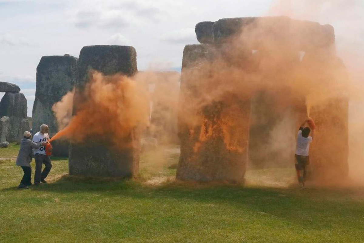 Двое хулиганов распылили оранжевую краску на камни Стоунхенджа в Великобритании.
