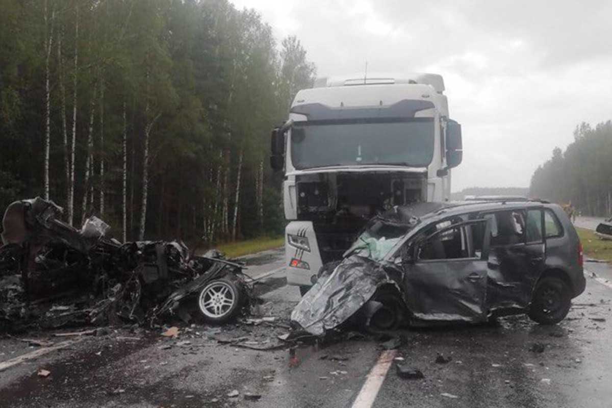 В какой-то момент он не справился с управлением, вылетел на встречную полосу движения, где совершил лобовое столкновение с Volkswagen и грузовиком MAN.