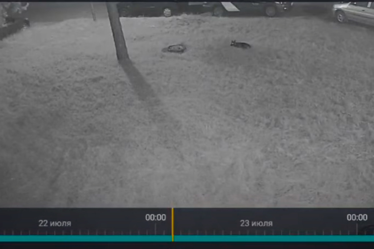 Момент падения двух собак зафиксировали камеры наружного видеонаблюдения. На кадрах видно, как почти одновременно животные падают, затем одно из них несколько раз пытается подняться и застывает в неподвижности.