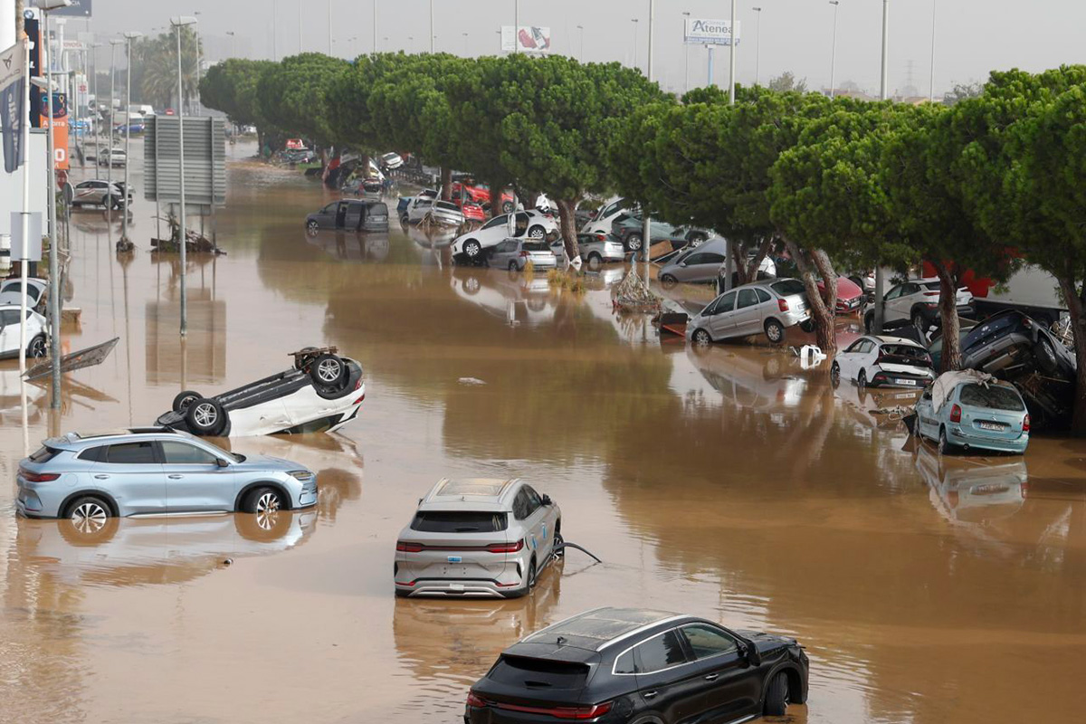 Scenes of piled-up vehicles in Valencia, Spain today after yesterday’s devastating flooding. pic.twitter.com/BM0k2QmADg