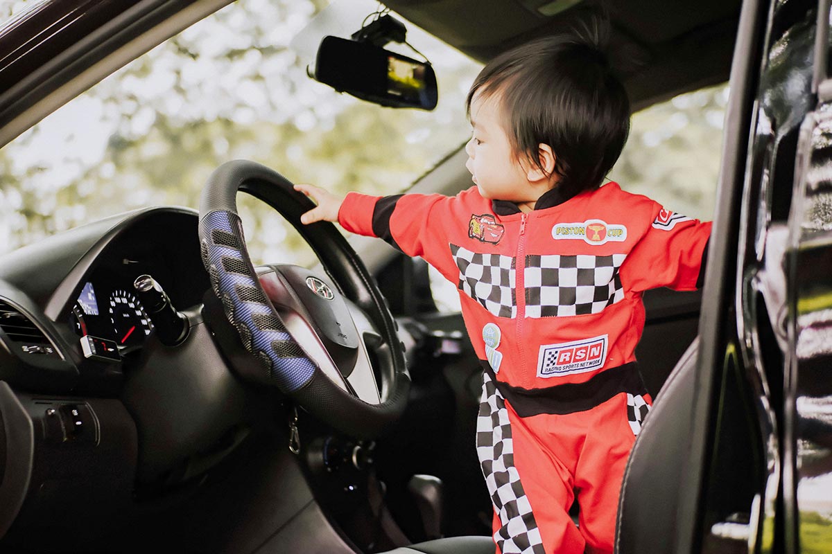 Перед тем как малыш оказался за рулем, отец перевозил его в машине без детского кресла, что уже является нарушением правил.