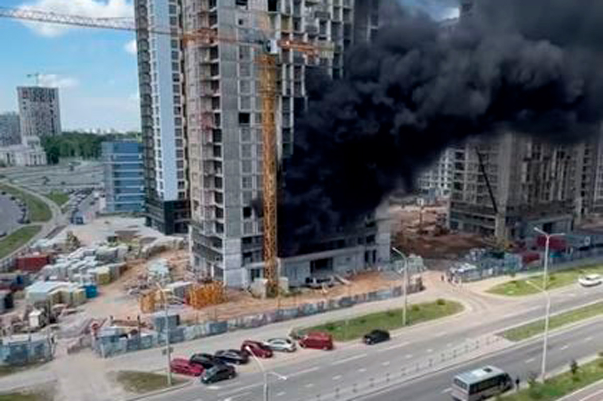 На стройке жилого комплекса "Минск-Мир" произошел пожар.