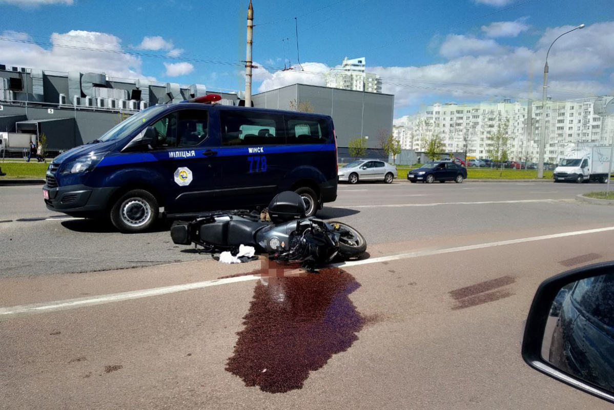 Позже в Госавтоинспекции сообщили: предварительно, 6 мая около 10:40 38-летний водитель мотоцикла Honda вблизи дома 152 по улице Притыцкого не справился с управлением и совершил наезд на припаркованный автомобиль Volkswagen.