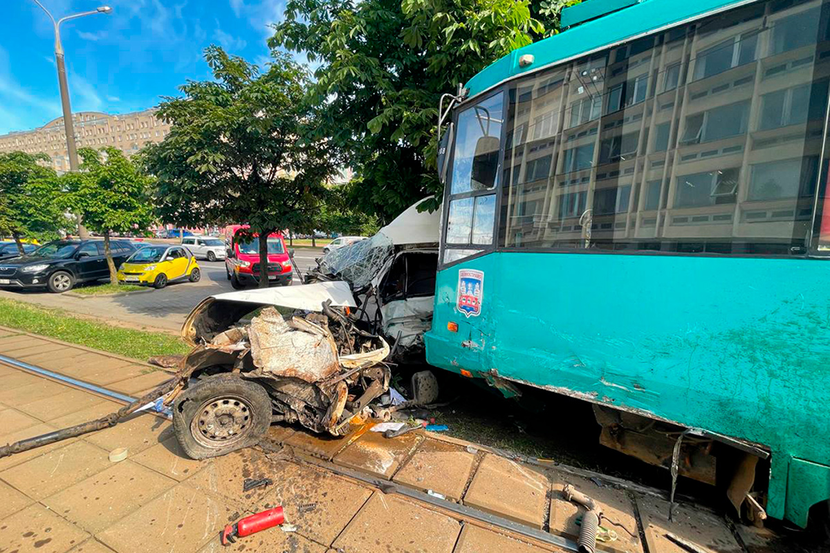 Очевидцы утверждают, что микроавтобус выехал на пути в непосредственной близости около приближающегося трамвая – даже мгновенная реакция водителя не спасла от ДТП.
