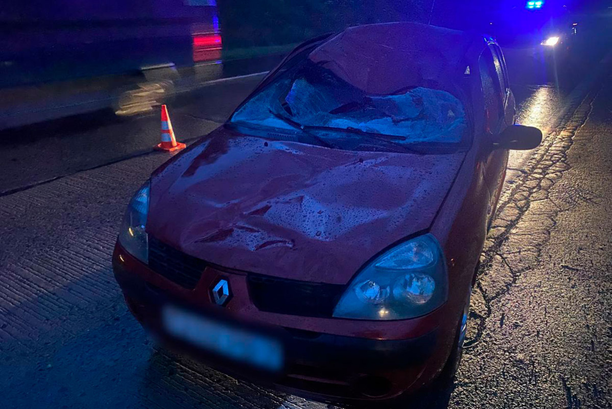 В результате происшествия женщина госпитализирована с травмами. Дикое животное, судя по снимкам, погибло.