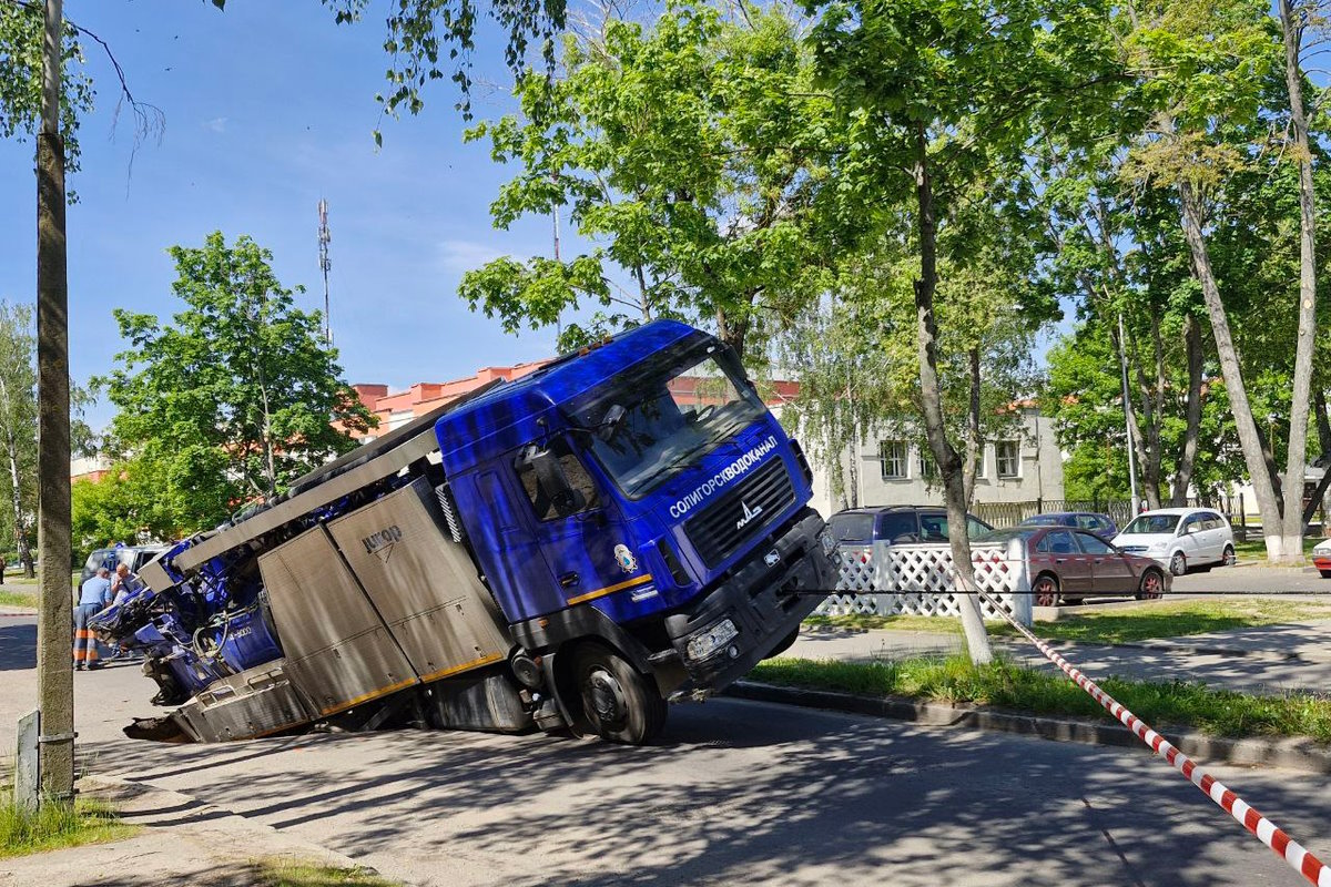 Автомобиль "Солигорскводоканала" провалился под асфальт прямо на проезжей части, сообщает Telegram-канал "Солигорск, Слуцк. Новости".