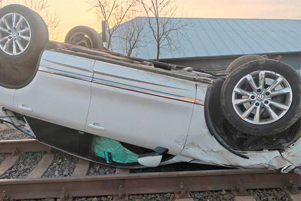 Во время проезда ж/д переезда неподалеку от улицы Шоссейной он переборщил со скоростью и наехал на рельсы. После этого автомобиль перевернулся.