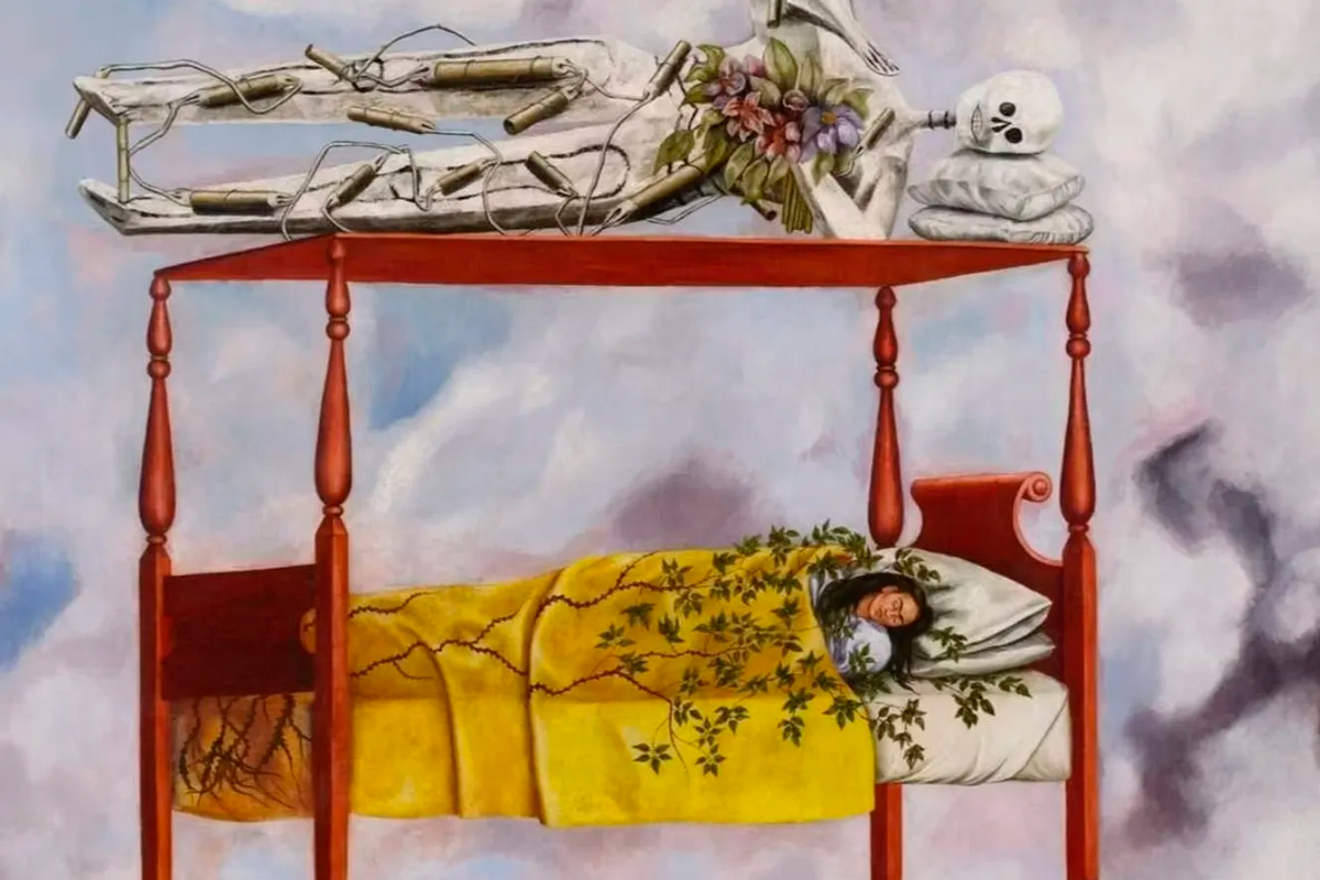 Картину "Сон" Кало написала в 1940-м году. На полотне художница изображает себя спящей на кровати с балдахином.