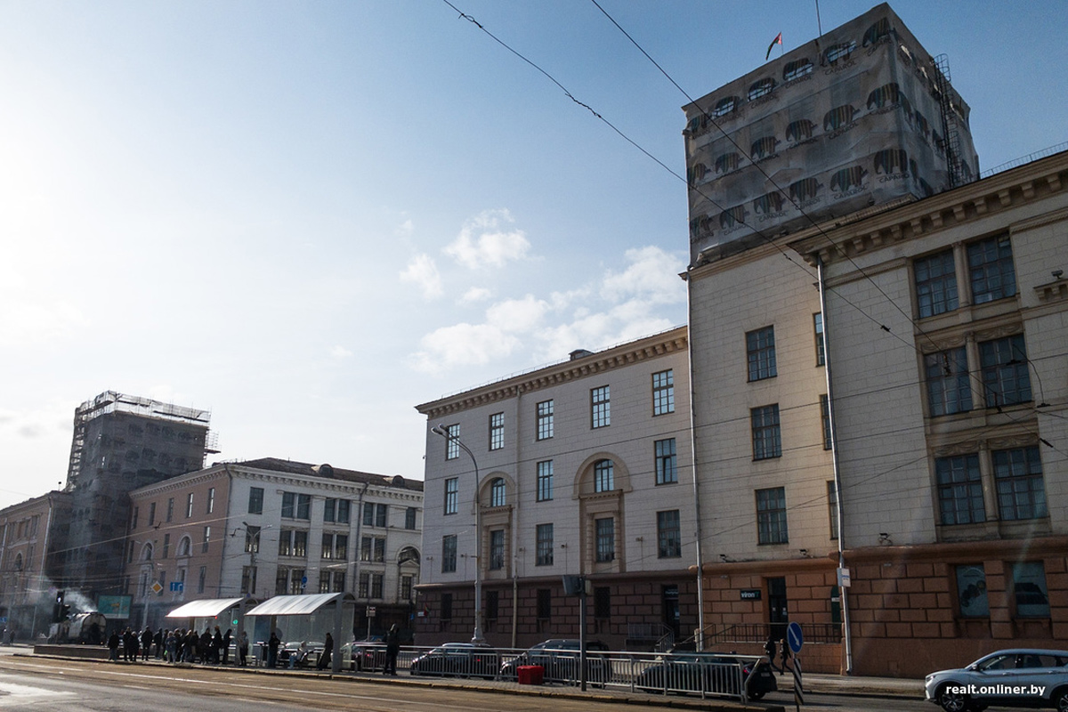 Офисы в башенке здания бывшего завода счетных машин на площади Якуба Коласа сдают в аренду, пишет Onliner.